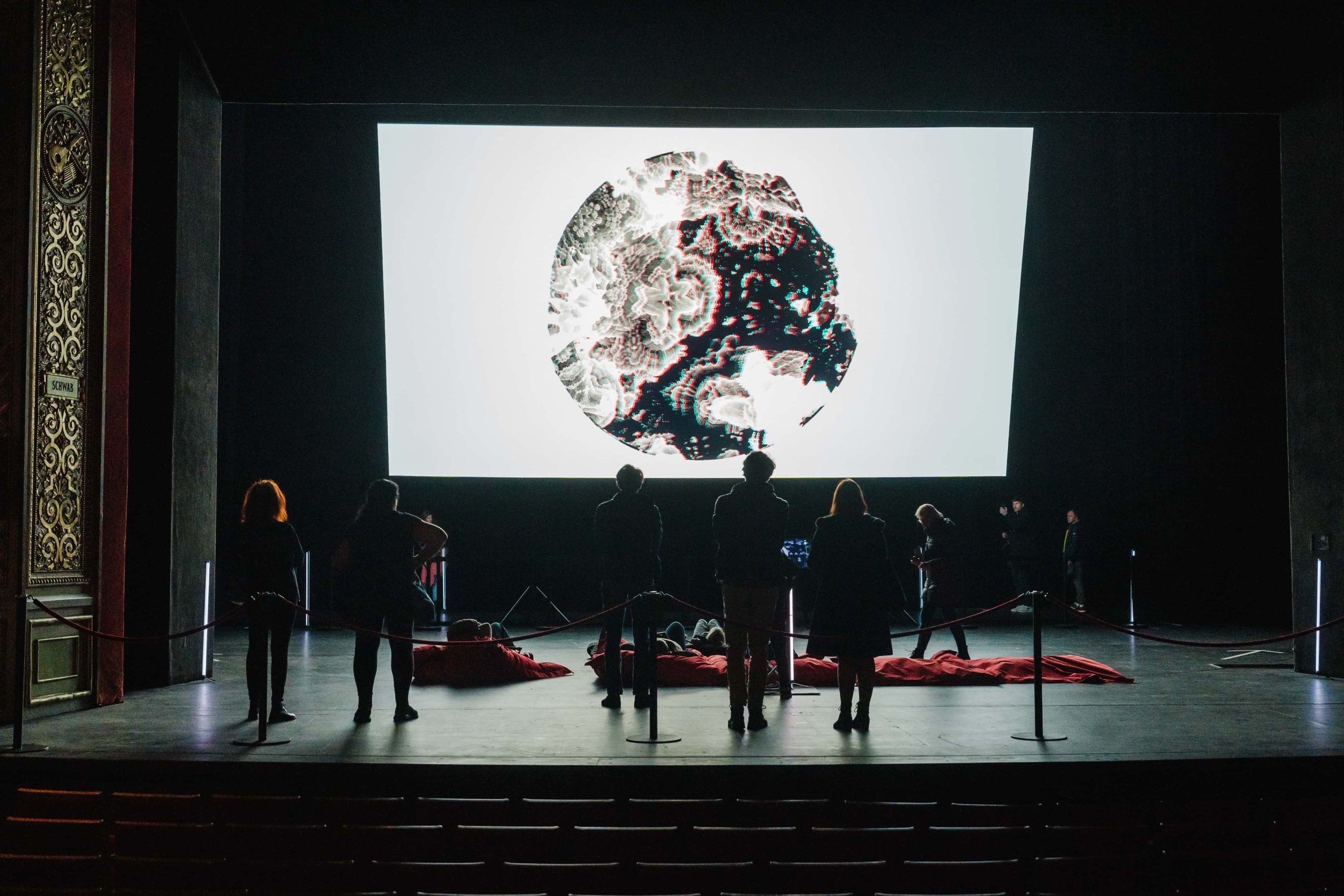 „Mantra Modulation“ verbindet Vergangenheit und Gegenwart: Auf der Bühne des Schauspielhauses erwacht eine virtuelle kinetische Skulptur mittels 3D-Brillen zum Leben. Im Einklang mit den visuellen Bewegungen entfaltet sich ein generativer Klangteppich. Das Publikum ist dabei nicht nur eingeladen, in diesen Raum der Illusion einzutauchen, sondern auch mitzuwirken: An einem interaktiven Pult können die visuellen und auditiven Elemente des Werkes moduliert werden: Jede Berührung formt die Welt, die sich vor den Augen der Besucher:innen auftut und erzählt ihnen eine eigene, ganz individuelle Geschichte. Diese Art der Co-Creation verwischt die Grenzen zwischen Kunst und Publikum und schafft eine persönliche Verbindung zur Installation.