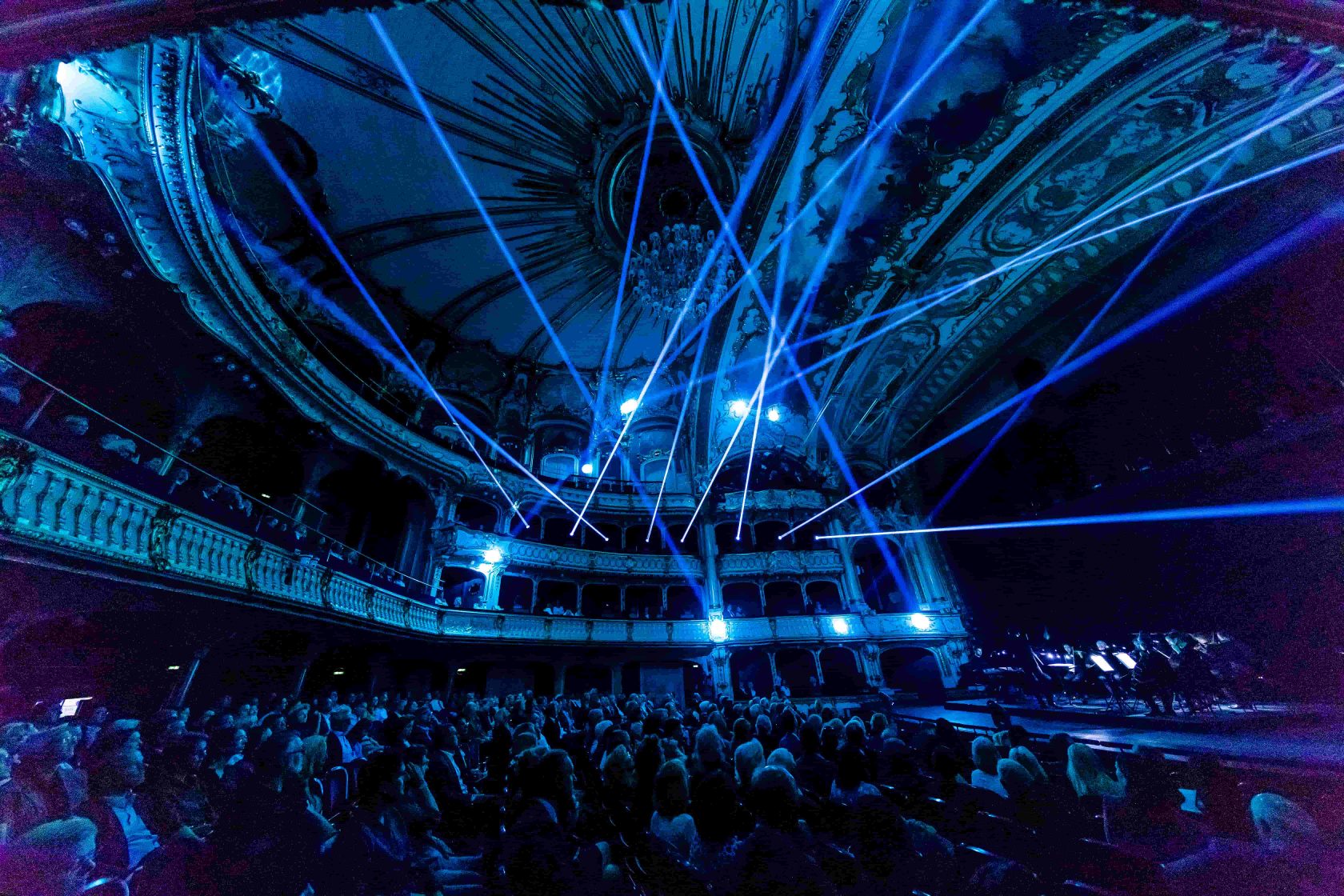 Licht und Klang verwandeln den Raum und machen ihn zu einem neuen, einzigartigen Erlebnis. Die umgebende Architektur, ob vertraut oder nicht, wird Teil eines Erlebnisses für Augen und Ohren.